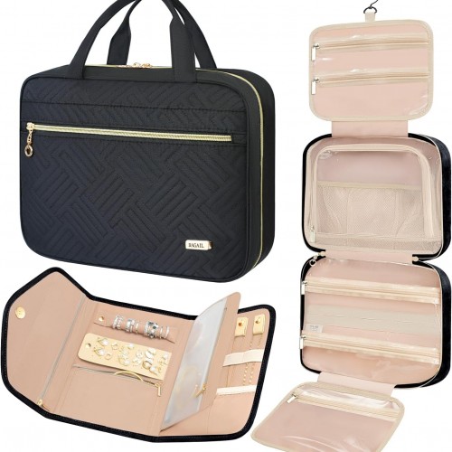 Travel Toiletry Bag for Women, Hanging Toiletry Bag, Bathroom Bag Portable Shower Caddy for College Dorm Travel Shower Bag for Women Water-Resistant Cosmetic Makeup Bag (Black)