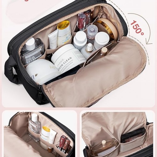 Travel Toiletry Bag for Women, Water Resistant Makeup Organizer with Wide-Open Design for Toiletries and Cosmetics, Black (Bag Only)