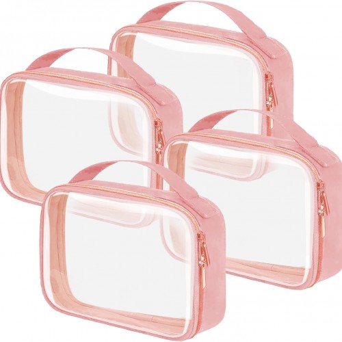 Travel Toiletry Bag,2 Pack Clear Makeup Bags with Handles,180°Opening Clear Cosmetic Bags for Traveling Women,Men,Travel Essentials,Leopard