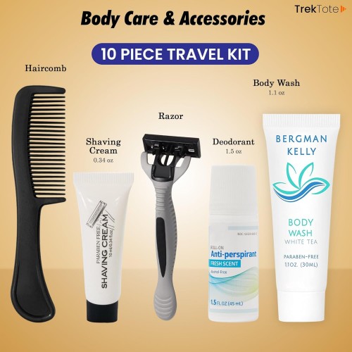 Trektote Travel Toiletry Kit for Men and Women – 20 Piece Set of Travel Size Toiletries, TSA Compliant, Includes Shampoo and Conditioner, Body Wash, Toiletry Bag & More (Pack of 3)