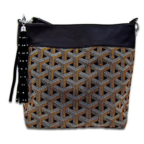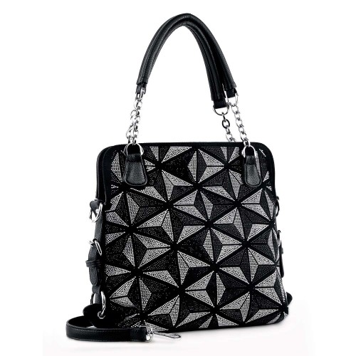 Dazzling rhinestones in a unique woven pattern bring eye-catching allure to this trendy hobo handbag.