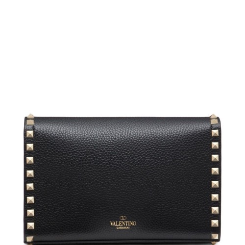 Gold-tone Rockstud details, logo print on the back, gold-tone details, twist lock, suede lining and adjustable and removable shoulder strap. Material: leather.