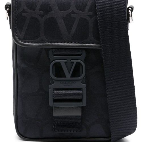 black interlock twill weave leather trim Toile Iconographe patterned jacquard front patch pocket rear patch pocket adjustable detachable shoulder strap with VLogo Signature main compartment three internal card slots full lining RFID authenticity tag silver-tone hardware top zip fastening