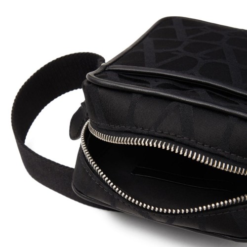 small Iconographe shoulder bag from VALENTINO GARAVANI featuring black, leather trim, VLogo Signature, palladium-tone hardware, slip pocket to the front, top zip fastening, main compartment, adjustable shoulder strap and Black Iconographe pattern.