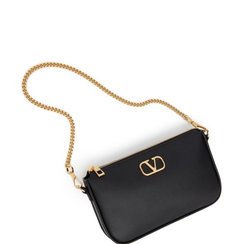 black lambskin VLogo Signature adjustable detachable shoulder strap detachable chain-link shoulder strap top zip fastening main compartment