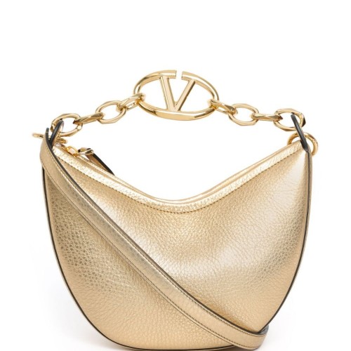 black leather smooth grain VLogo Signature gold-tone hardware chain-link shoulder strap adjustable detachable shoulder strap top zip fastening main compartment internal card slot internal logo stamp