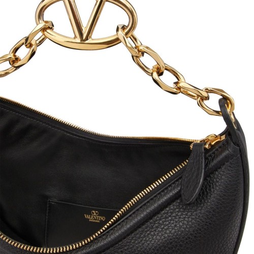 black leather gold-tone hardware chain-link shoulder strap VLogo Signature adjustable detachable shoulder strap curve-edge body top zip fastening internal slip pocket leather lining