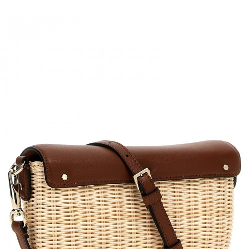 ‘Locò’ wicker and leather shoulder bag, magnetic flap closure with front metal logo detail, removable leather handle.