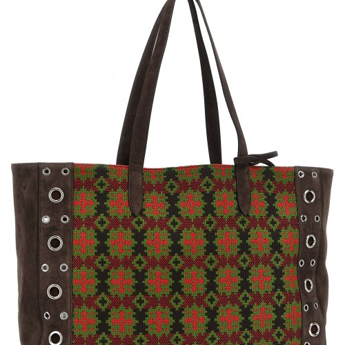 Large ‘Nellcôte’ shopping bag in jacquard fabric with geometric pattern, suede trim decorated with ball studs and rivets, metal VLogo Signature on the front, double fixed handle, and removable inner clutch.