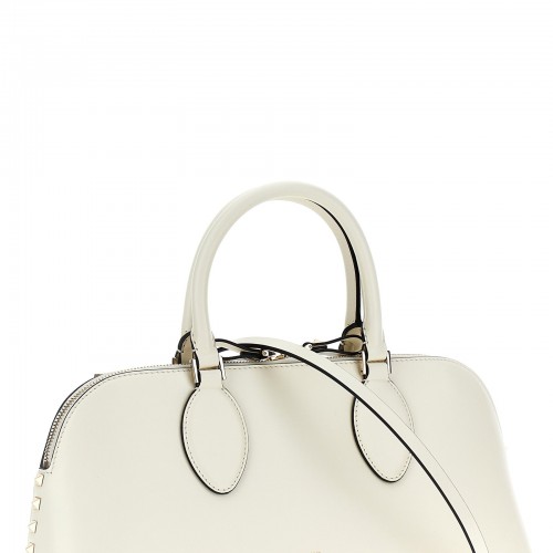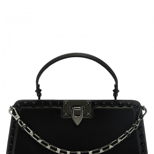 ‘Rockstud’ leather handbag with zip closure, double handle, chain shoulder strap with central opening hook and leather detail, stud application.