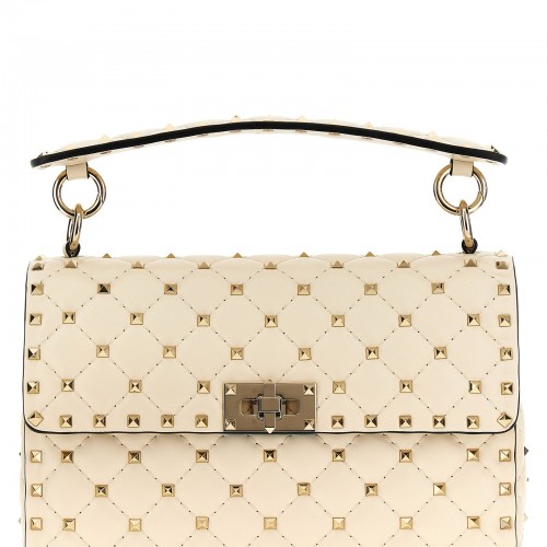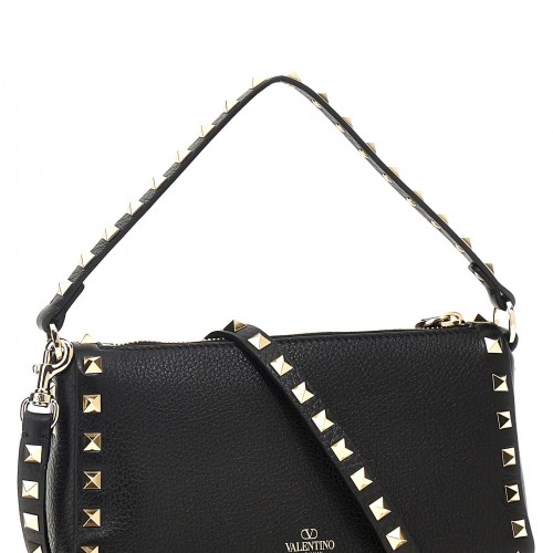 ‘Rockstud Small’ leather shoulder bag with stud applications, flap closure with hooks, fixed handle, removable shoulder strap.