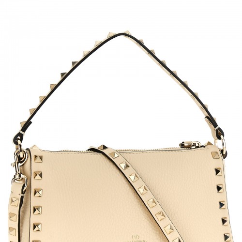 ‘Rockstud Small’ leather shoulder bag with stud applications, flap closure with hooks, fixed handle, removable shoulder strap.