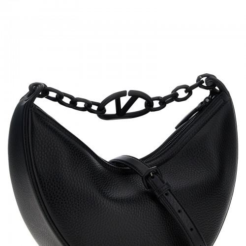 ‘Small Hobo VLogo Moon’ leather shoulder bag, zip closure, metal handle with logo, removable shoulder strap.