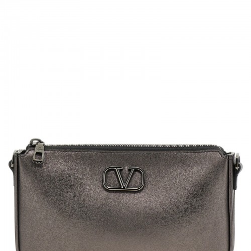 Leather crossbody bag with front metal ‘VLogo Signature’ detail, zip closure, removable shoulder strap on one side.
