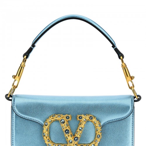‘Vain’ shoulder bag in shiny calf leather, magnetic flap closure with cut-out antique effect metallic VLogo Signature detail, sliding chain shoulder strap, nappa lining.