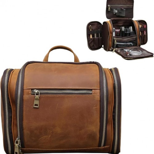 - Premium grain leather – our exclusive xl large leather toiletry bag for men is made from top grain leather with waterproof lining and solid brass hook for hanging. This travel toiletry bag will last a lifetime.