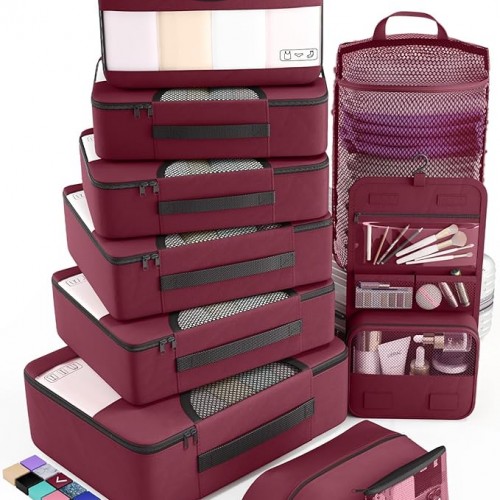 Veken 10 Set Packing Cubes for Travel Essential, Suitcase Organizer Bags in 4 Sizes, Carry-On Luggage Accessories with Large Laundry & Hanging Toiletry Bag, Must-Have for Airplane, Road Trip & Camping