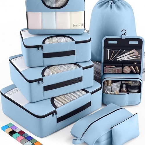 - Travel Without Worry: The set includes a hanging toiletry bag with four compartments to neatly store toiletries and cosmetics. Varying cube sizes help you sort and access your clothes with ease, saving time, avoiding mix-ups, and maximizing suitcase space—making travel more efficient and stress-free.