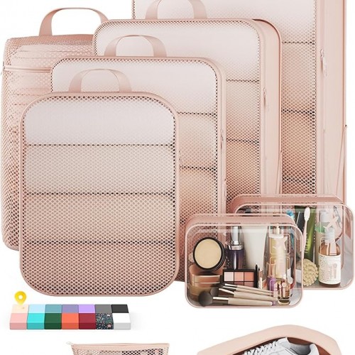 Veken 9/11 Set Compression Packing Cubes for Travel Essentials,Compressible Expandable Large Luggage Suitcase Organizer Bags for Clothing,Durable Space Saver Storage Bags with Toiletry Bags(Gray)