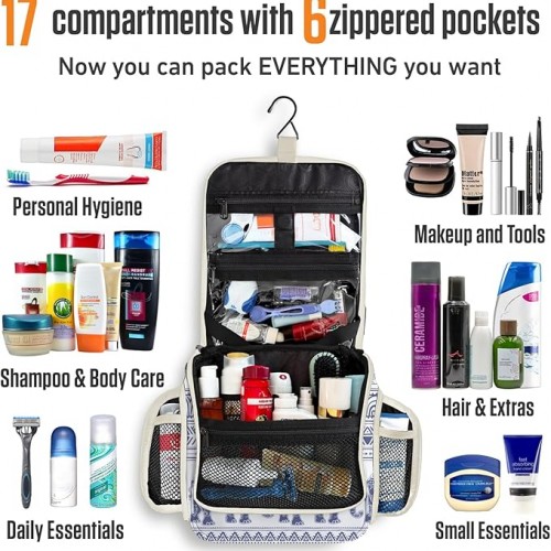 - HOOK & ORGANIZATION – 17 compartments and a versatile hook let you hang it, save space, or stand it upright when needed. Perfect for travel, camping, or at home.