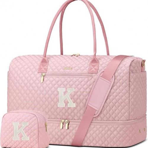 Weekender Bags for Women, Travel Duffle Bag Carry On Travel Bag Overnight Bag with Shoe Compartment Toiletry Bag, Large Weekend Tote Bag Gym Bag Hospital Bag for Labor and Delivery, 50L Quilted Black