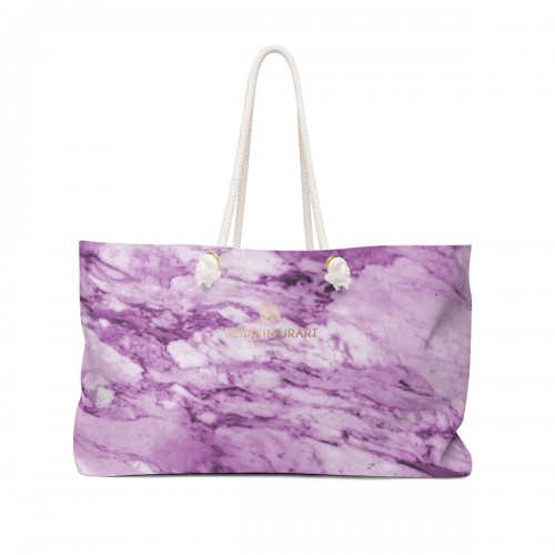 White Marble Print Weekender Bag, Marbled Printed White Marble Print Designer 24″x13″ Overnight Travel Weekender Bag-Made and Printed in USA