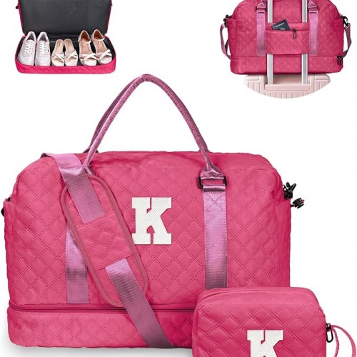 Women Gift, Teen Gifts for Girls-Initial Travel Bag with Shoe Compartment, Personalized Weekender Bag, Monogram Overnight Bag for Women, Letter Travel Bag with Makeup Bag (Letter A)