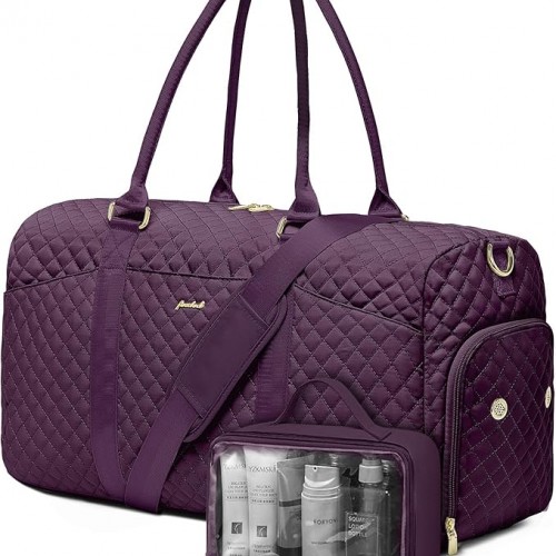 - 【Upgraded 3 Pcs Set Weekend Bags】:The travel bag for women comes with updated 3 Pcs Set: 1 travel duffel bag +1 clothing packing cube +1 toiletry/makup bag. Roomy space can even fit in 3-5 days of daily essentials. The packing cube with a clear mesh can help you keep clothes fresh, and easily tell where everything is. Help you organize and maximize your space when travel.