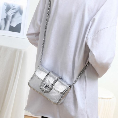 Women’s Chain Saddle Mini Underarm Autumn Genuine Crossbody Bags Silver (Viney)
