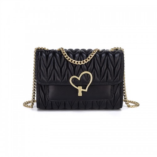 Women’s Genuine Leather Fashionable Diamond Chain Bags Black