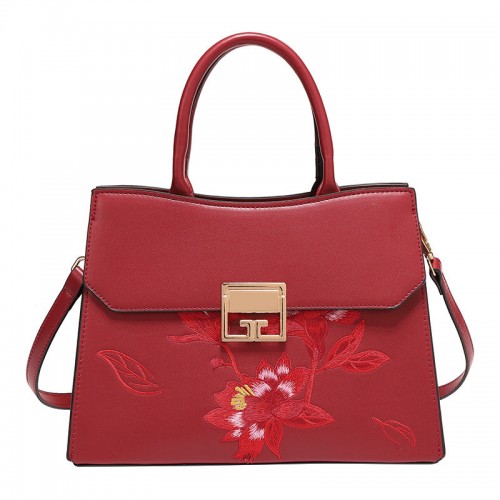 Women’s Luxury Elegant Large Capacity Lotus Embroidery Bags Embroidered Lotus Red (with Silk Scarf)