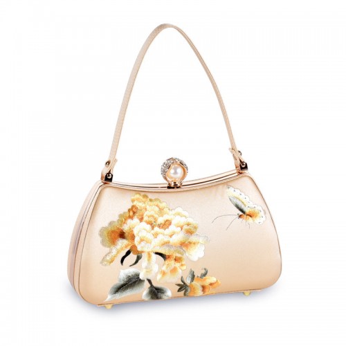 Women’s Portable Cheongsam Formal Dress Ancient Costume Bags Peony Black (Red Flower)