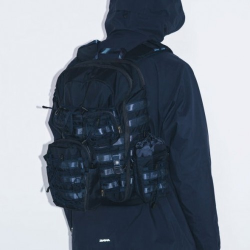 Helmet bag in durable polyester Cordura® fabric with checkered lining. 2WAY specification with shoulder strap and handle. Embroidered graphics symbolizing the WTAPS and VANS snowboard gear project on the left corner of the outer pocket divided at the center, and a WTAPS® woven name on the right corner.
