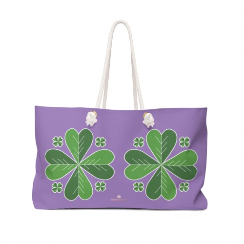 Yellow Green Clover Weekender Bag, Yellow Green Clover Print St. Patrick’s Day Designer 24″x13″ Designer Oversize Tote Weekender Bag-Designed and Printed in USA, Suitcases & Travel Bags Luggage, Four Leaf Clover Weekender Tote Bag, Bachelorette or Women’s Weekend Bag, St. Patrick’s Hangover Drunk Recovery Weekender Oversize Tote Bag
