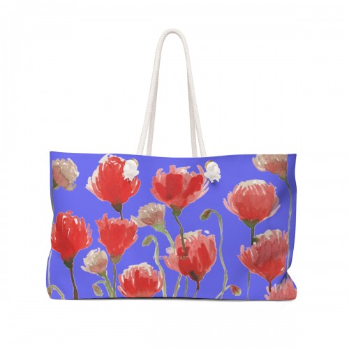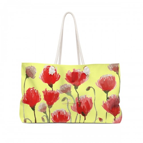 Yellow Red Poppy Weekender Bag, Flowers Floral Print Oversized Designer 24″x13″ Large Weekender Bag 24×13