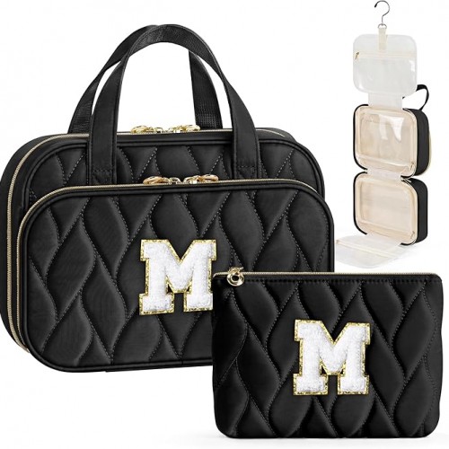 YOOLIFE Gifts for Friends – Friendship Gifts for Women, Travel Toiletry Bag for Women, Hanging Toiletry Bag, Monogrammed Initial Toiletry Pouch Makeup Bag – Letter F Pink