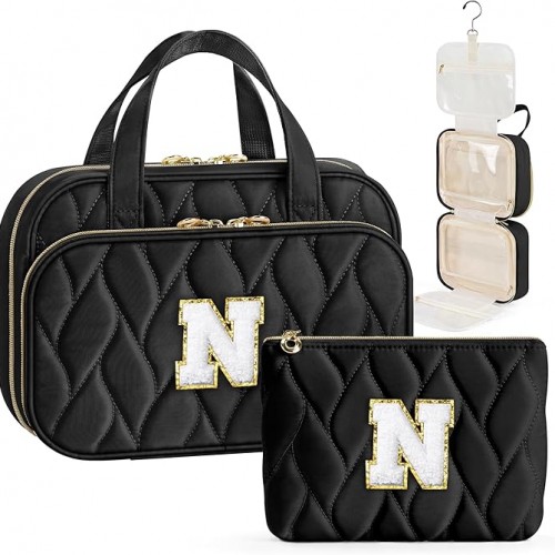 YOOLIFE Hanging Toiletry Bag for Women – Large Travel Toiletry Bag Makeup Bag, Portable Toiletries Cosmetic Bag, Airplane Travel Essentials Black – J