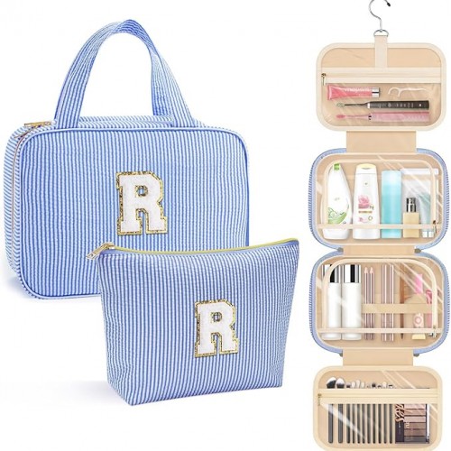 YOOLIFE Hanging Toiletry Bag for Women – Large Travel Toiletry Bag Makeup Bag, Portable Toiletries Cosmetic Bag, Airplane Travel Essentials – Letter N, Purple