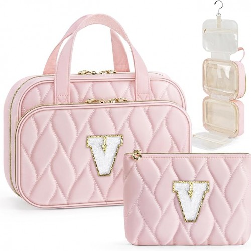 YOOLIFE Hanging Toiletry Bag for Women – Large Travel Toiletry Bag Makeup Bag, Portable Toiletries Cosmetic Bag, Airplane Travel Essentials Purple – L