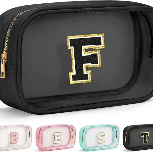 YOOLIFE Initial Clear Makeup Bag | Travel Clear Makeup Bag | Travel Beach Toiletry Bag | Car Organizer Essentials for Women | Waterproof Large Clear Travel Toiletry Bag | Teacher Birthday Gifts Blue K