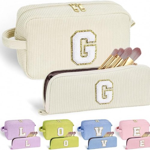 YOOLIFE Initial Cute Pink Makeup Bag Pouch Gift for Niece Sister Friend Female Her Mom | Birthday Gifts for Women Daughter Gifts | Cosmetic Travel Bag B