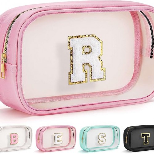 YOOLIFE Initial Make Up Bag Travel Toiletry Bag, Clear Makeup Bag Preppy Cosmetic Bags Organizer Travel Essentials Gifts for Women Teen Girlfriend Teacher Mom Brithday Mothers Day Gifts, Large, White