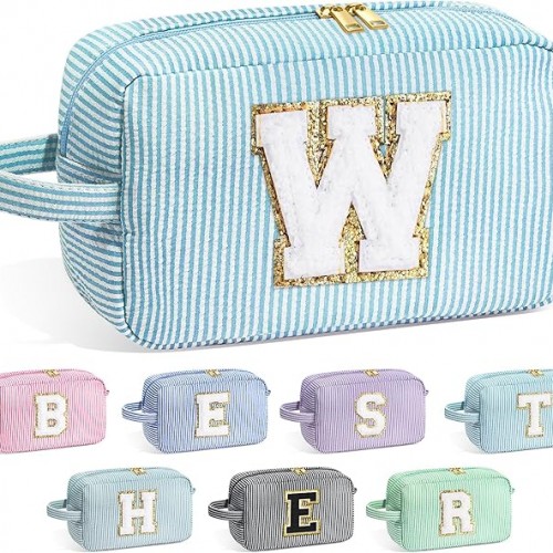 YOOLIFE Initial Makeup Bag for Women – Teen Girl Gifts Trendy Stuff Monogram Cute Makeup Bags Make Up Case for Women Her Best Friend Friendship Sister Teacher Birthday Gifts for Women Mom Black L