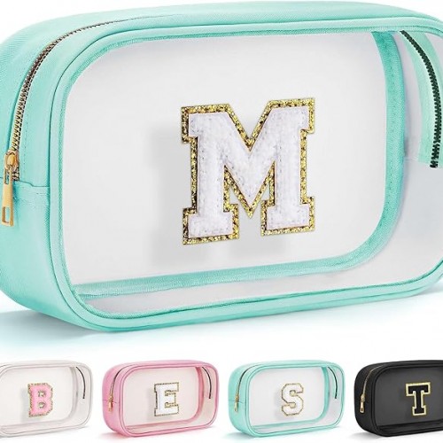 YOOLIFE Initial Travel Makeup Bag Pouch, Clear Toiletry Bag for Women Travel Accessories Cosmetic Bag Skin Care for Teen Make Up Bags Birthday Gifts for Women Unique Teacher Mom Friends Gifts Black B