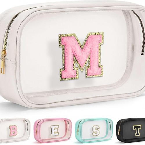 YOOLIFE Travel Makeup Bag Toiletry Bag for Women, Clear Make up Bag PVC Cosmetic Bag Black Travel Accessories Makeup Pouch Birthday Gifts for Women Teacher Mother Wife Girlfriend Gifts Letter Z