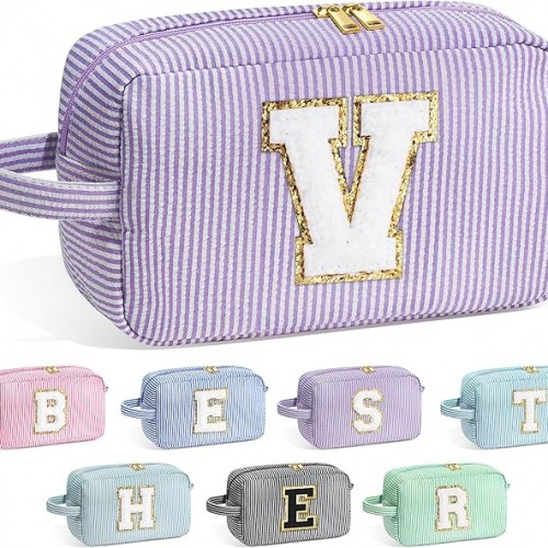 YOOLIFE Travel Toiletry Bag for Women – Hanging Toiletry Bag Initial Makeup Bag, Portable Toiletries Cosmetic Bag, Airplane Travel Essentials – Letter I, Pink