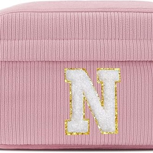 YOOLIFE Travel Toiletry Bag for Women – Hanging Toiletry Bag Makeup Bag, Portable Toiletries Cosmetic Bag, Airplane Travel Essentials – Letter V, Pink