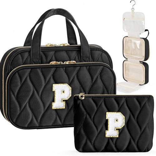 YOOLIFE Travel Toiletry Bag for Women – Hanging Toiletry Bag, Personalized Initial Toiletry Bags for Traveling Women, Portable Travel Toiletry Bag for Toiletries, Cosmetics – Letter H Pink