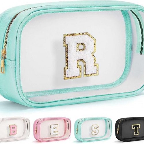 YOOLIFE Travel Toiletry Bag for Women, Pink Clear Makeup Bag Cute Make Up Bag for Women Cosmetic Bags Skin Care Makeup Bag Organizer Birthday Gifts for Women Teacher Mother Girlfriend Initial P