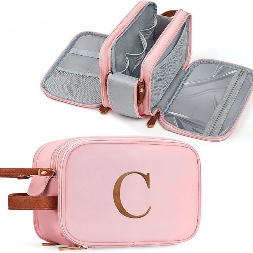 - LARGE CAPACITY & WATERPROOF: Initial Toiletry Bag size: 9.4″L x 5.5″W x 6.3″H. Travel toiletry bag made of water-resistant material, easy to wipe clean and protects the toiletries from splashed water.